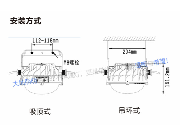 ■體積小,重量輕,可采用吊頂式、掛鏈?zhǔn)健⒈谑降榷喾N安裝方式,滿足不同工作現(xiàn)場(chǎng)的安裝需求和照明需要,操作簡(jiǎn)單方便。